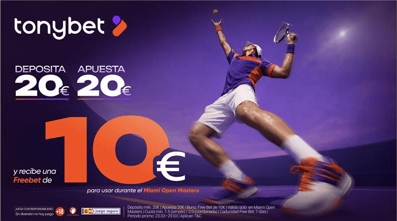 Freebet de 10€ para el Miami Open en TonyBet: así puedes conseguirla